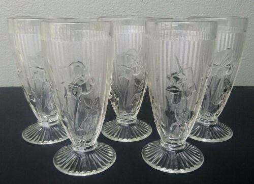Title (ebay affiliate link): JEANNETTE - IRIS & HERINGBONE - FOOTED ICED TEA TUMBLERS - SET OF 5
