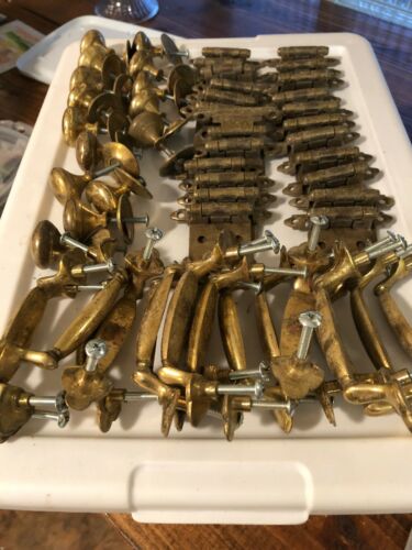 Title (ebay affiliate link): Huge Lot Vintage Brass Cabinet/Furniture Drawer Pulls & Knobs W/Hinges & Screws