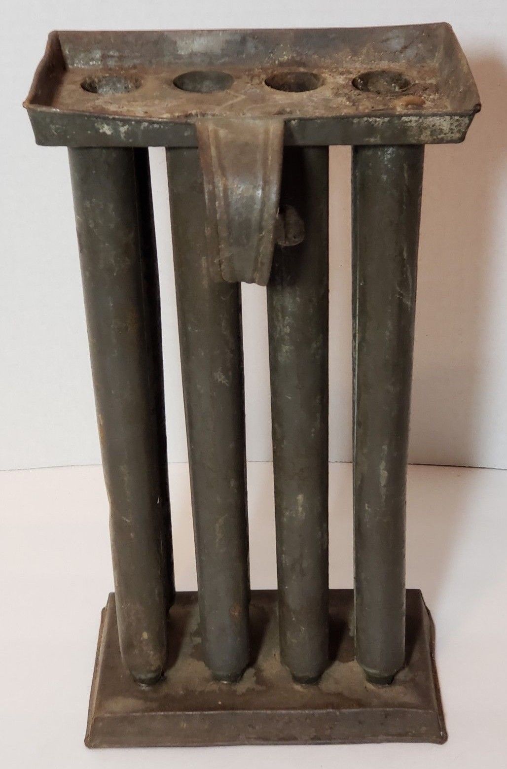 Title (ebay affiliate link): Antique Primitive Tin Metal 8 Tube Hole Taper Rectangular Candle Mold w/ Handle