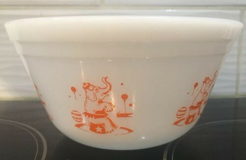 Title (ebay affiliate link): Federal Milk Glass 7" Orange Circus Bowl Vintage Elephant Balloons