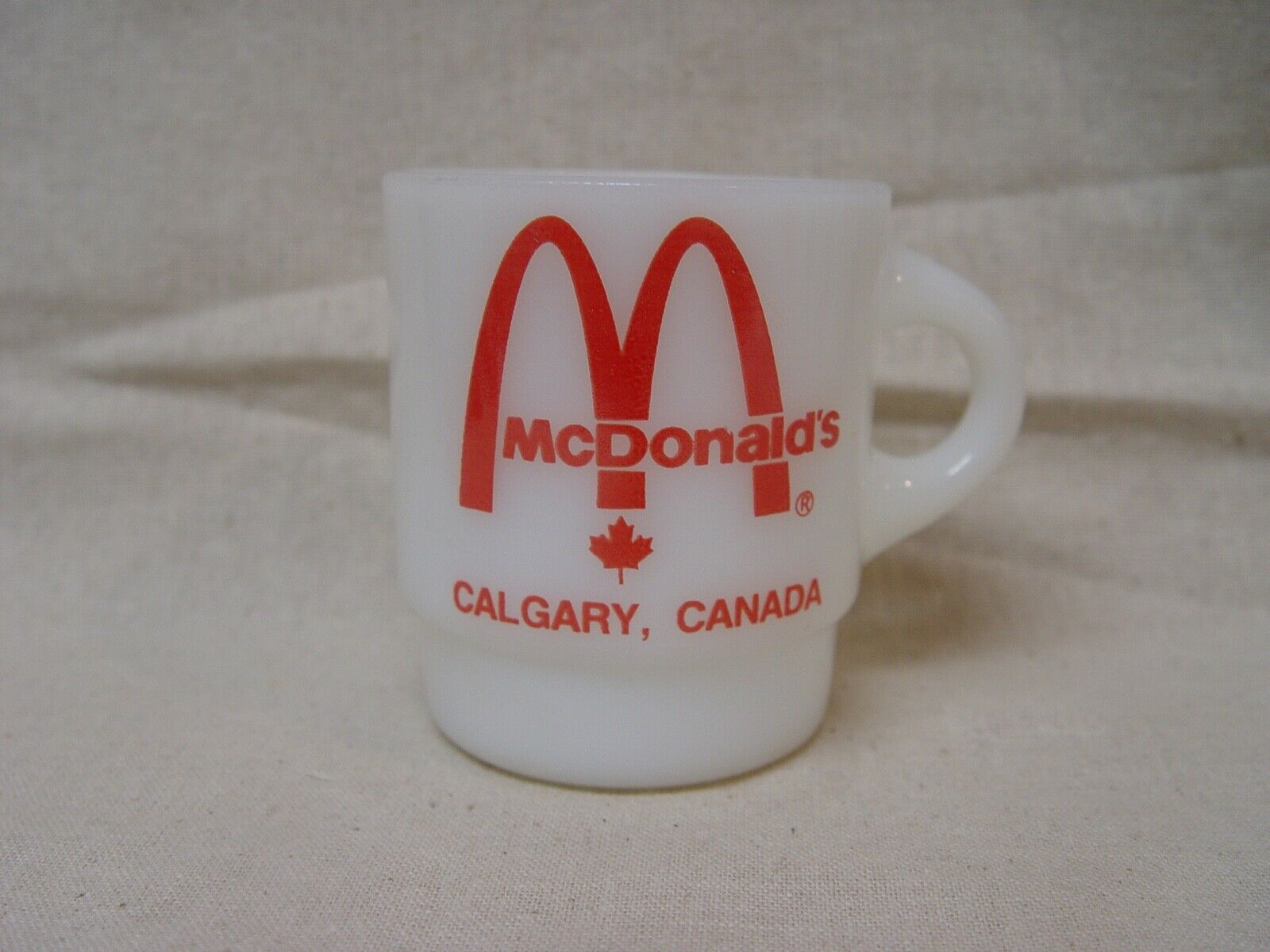 Fire-King McDonald''s Calgary Canada Milk Glass Souvenir Advertising Coffee Mug