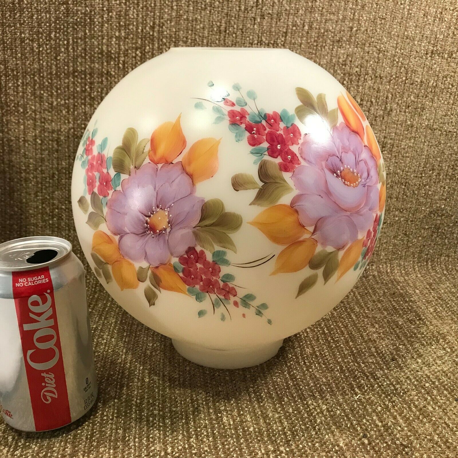 TE89i Antique VTG Milk Glass Light Lamp Shade Painted Gone With The Wind Round