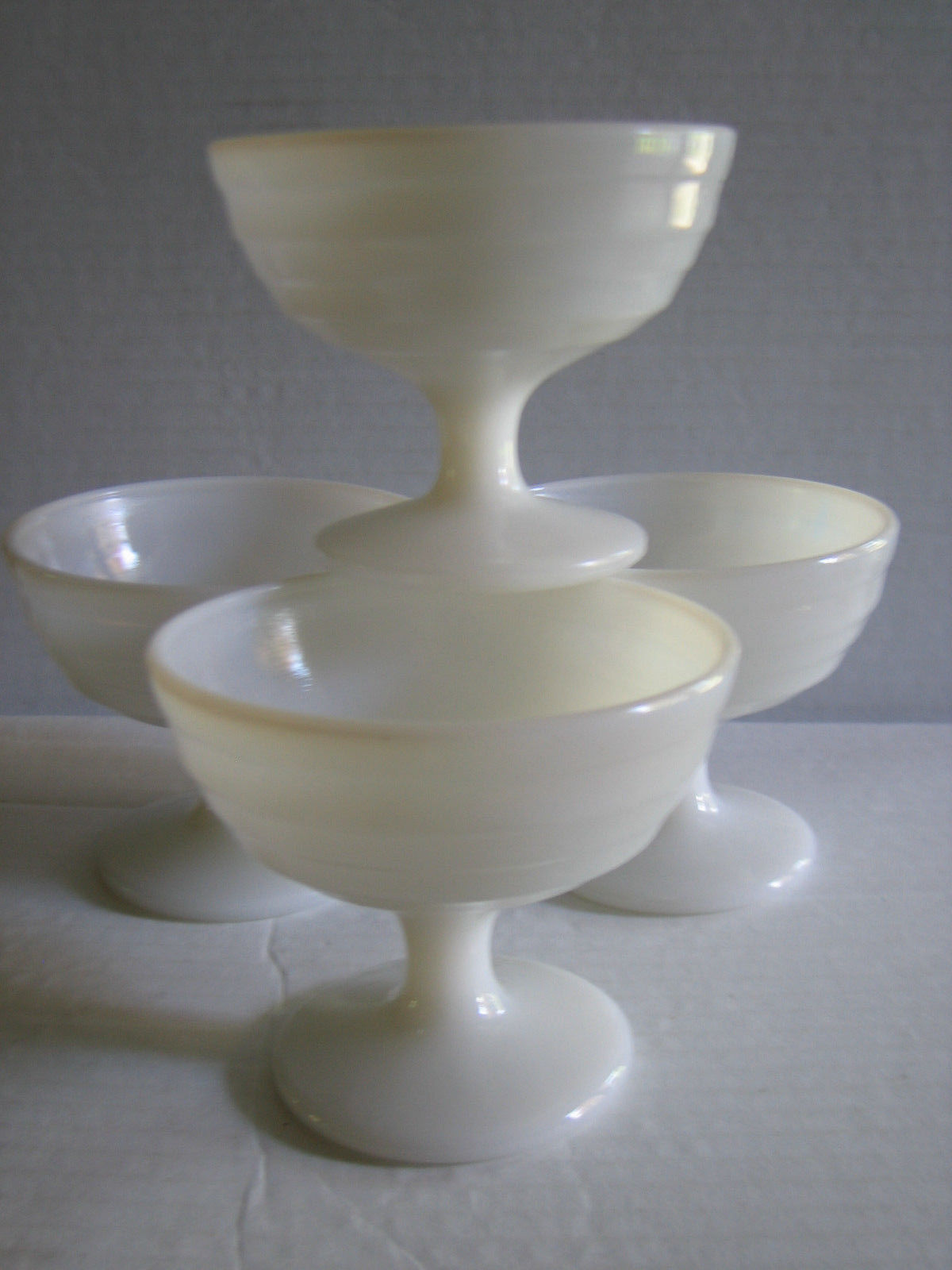 Title (ebay affiliate link): Lot of 4 Fenton Milk Glass Ribbed Sherbet Ice Cream Glasses Cups