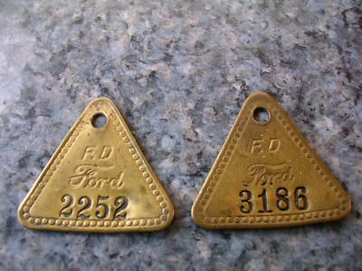 Title (ebay affiliate link): 2 FORD Antique Brass Tool Checks Tags Ford Motor Co.