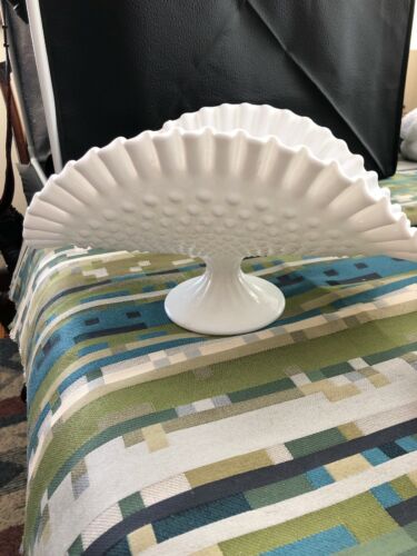 Vintage Fenton Glass Hobnail Ruffled White Milk Glass Banana Boat/Holder A+++