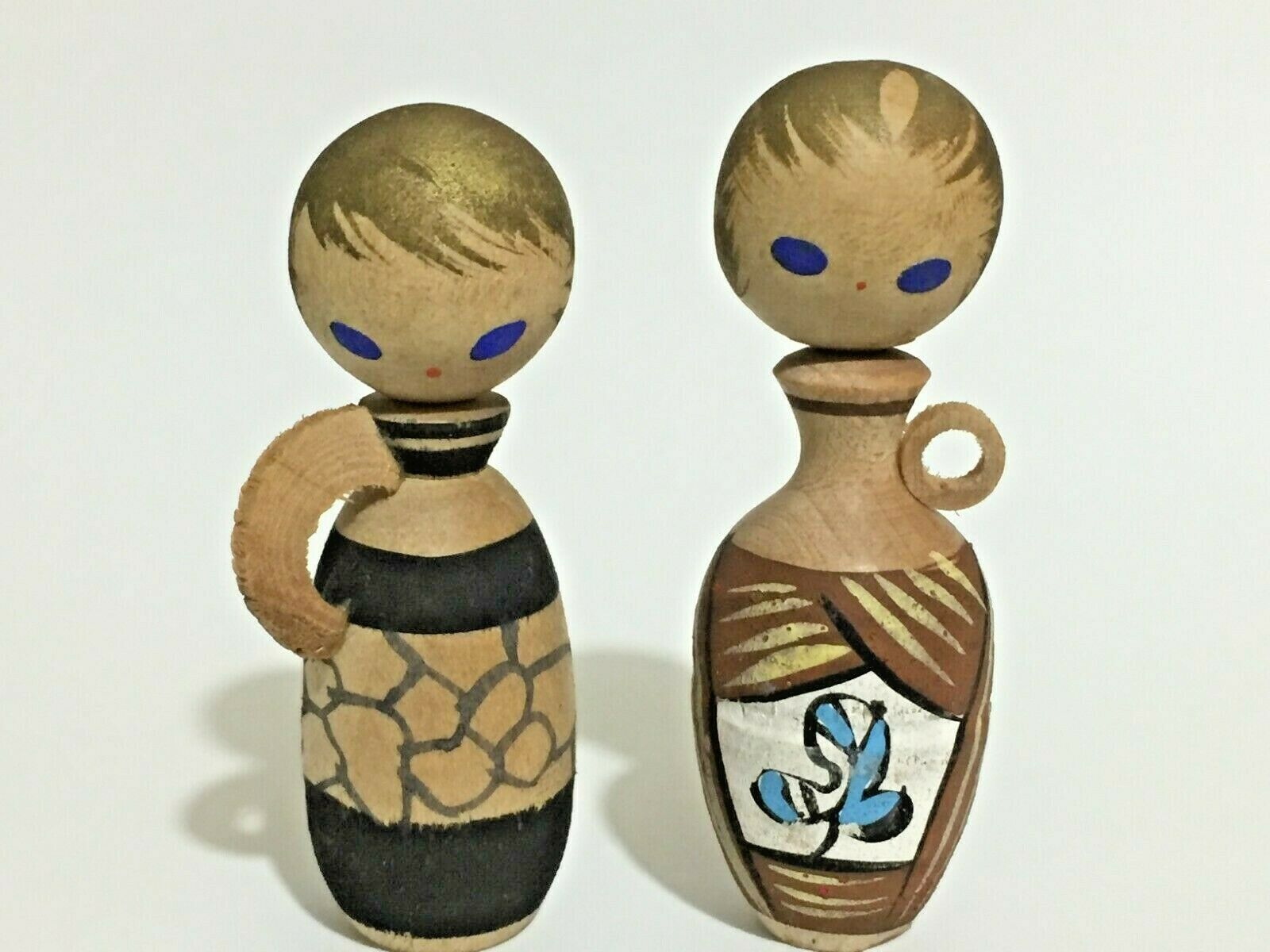 5.1cm&4.9cm 2 Kokeshi Dolls Japan Antique No.TB318C