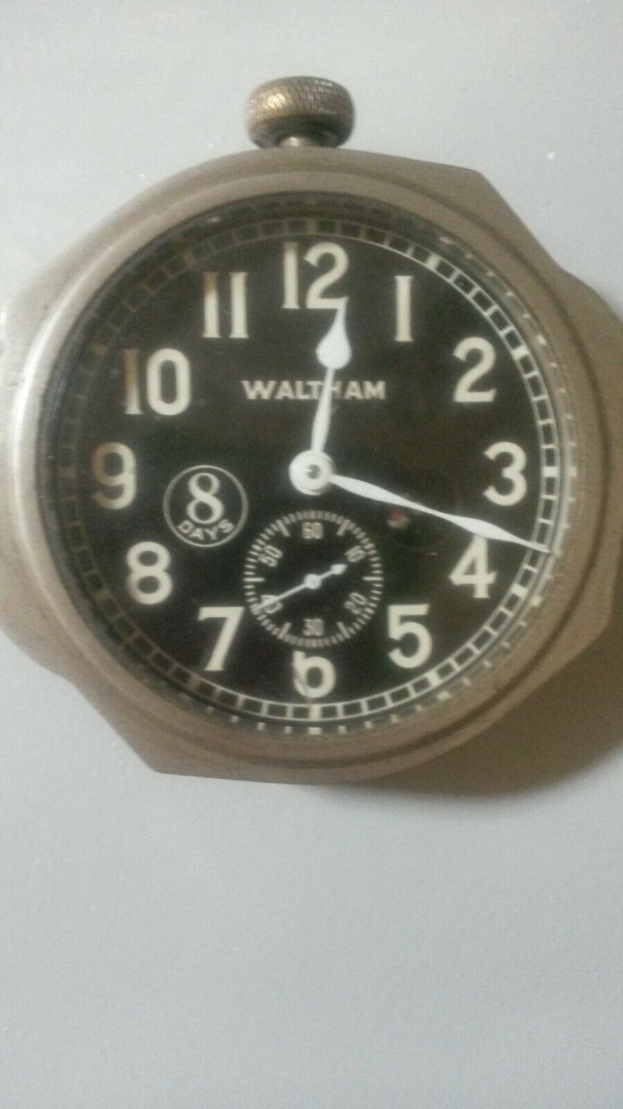 Antique 1910 Waltham 8 day 7 jewel car clock w/wind indicator **WORKS**