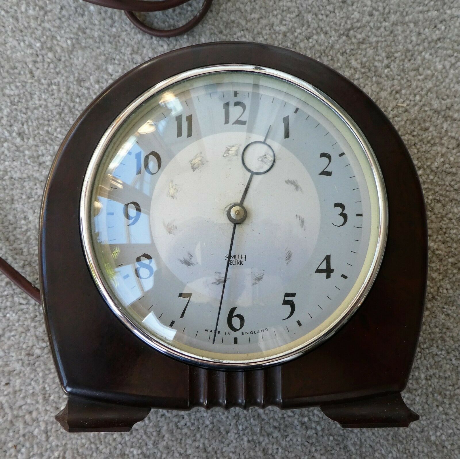 Title (ebay affiliate link): SMALL SMITHS VINTAGE ART DECO STYLE BAKELITE ELECTRIC CLOCK. WORKING CONDITION