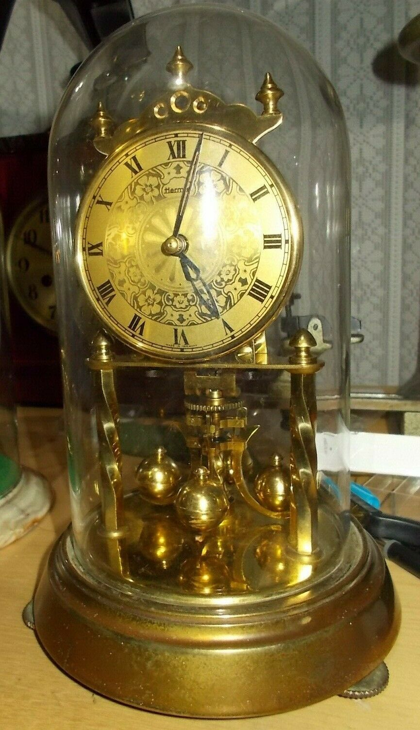 Hermle 400 Day clock with glass dome 1960''s