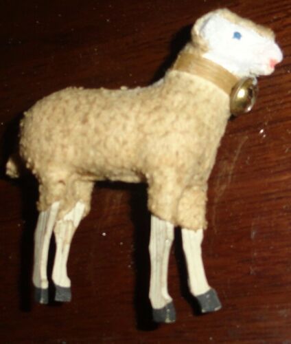 Title (ebay affiliate link): Putz? Sheep German Germany Wooly Stick Leg Composition Antique Tan Collar & Bell