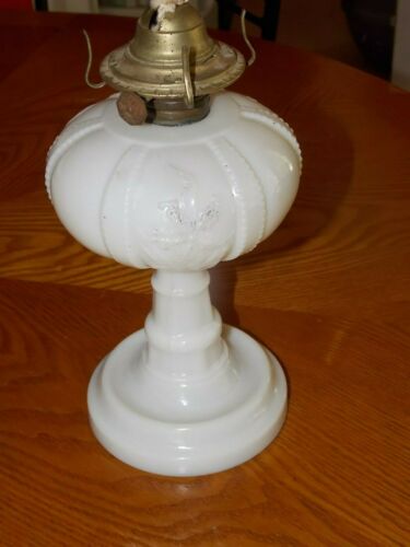ANTIQUE EAPG MILK GLASS KEROSENE/OIL TABLE LAMP