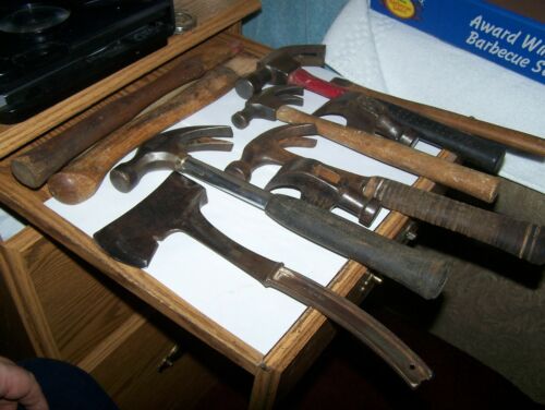 VINTAGE CLAW HAMMER ESTWING STANLEY HATCHET HANDLES HEADS 11 ITEMS SHEEPFOOT HAN