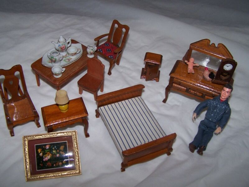Title (ebay affiliate link): LOT OF VINTAGE WOODEN DOLLHOUSE FURNITURE & ACCESSORIES 1 DOLL