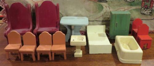 Vintage Miniature Dollhouse or Roombox 14 Pcs Wooden Furniture Up to 4" Tall