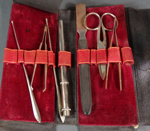 Title (ebay affiliate link): Antique German Medical Surgical Scissors Tweezers File Instruments Tool Set&Case