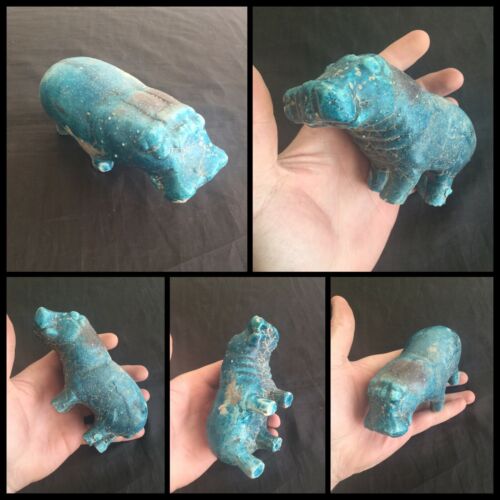 Title (ebay affiliate link): Very rare ancient Egyptian blue glazed hippopotamus offering statue , 300 bc