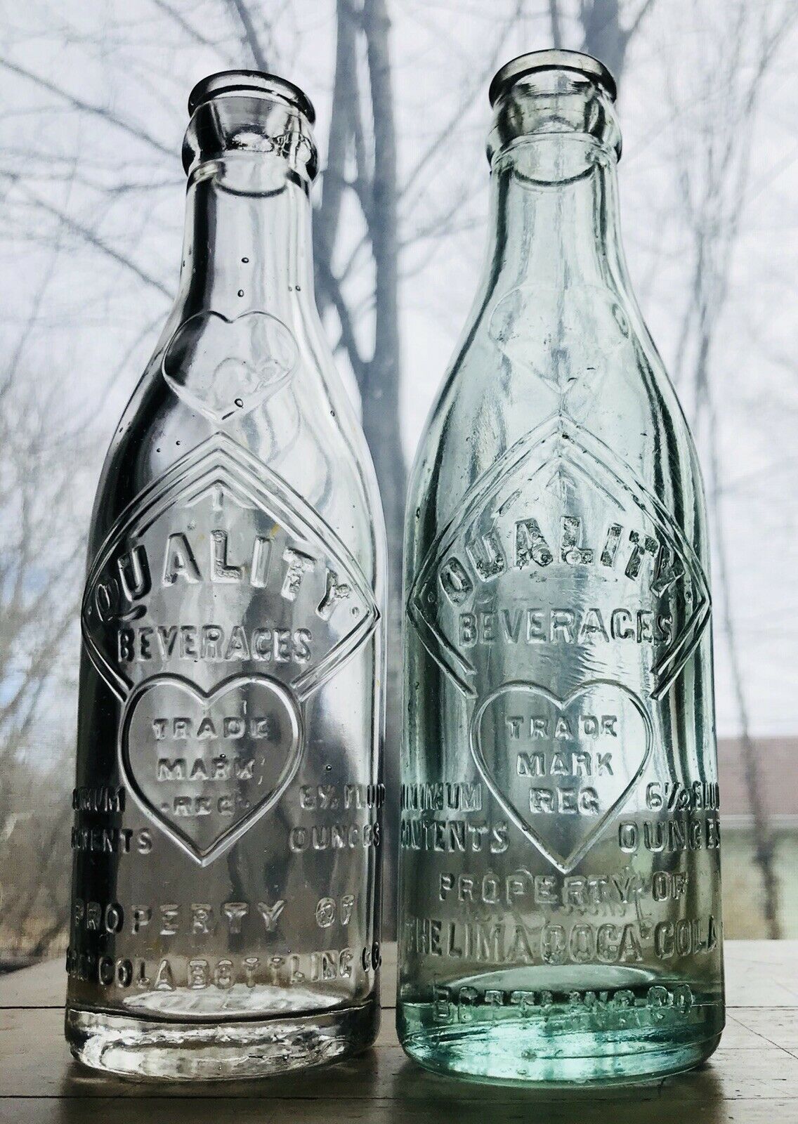 2 VINTAGE QUALITY BEVERAGES "HEART" COCA-COLA SODA POP BOTTLES TOLEDO & LIMA OH