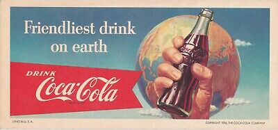 Title (ebay affiliate link): DRINK COCA-COLA "FRIENDLIEST DRINK ON EARTH" 1956 COCA-COLA illustrated BLOTTER
