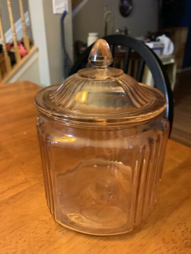 Title (ebay affiliate link): VINTAGE COLLECTIBLE PINK DEPRESSION GLASS COOKIE BISCUIT JAR