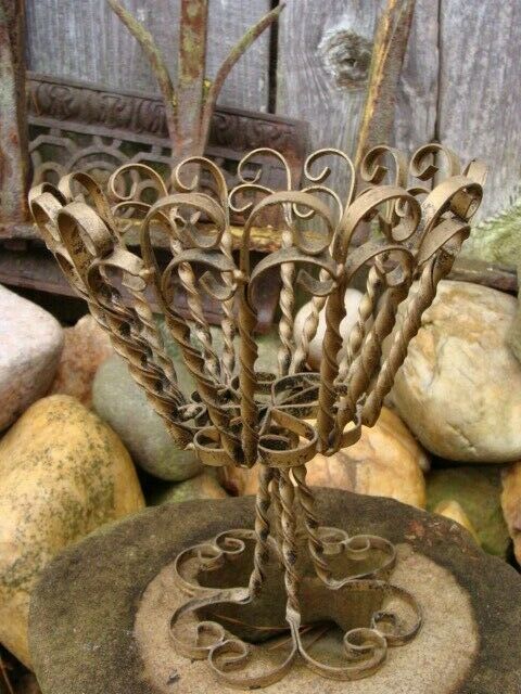 Folk Art Wire Metal Antique Primitive Old Gold Paint Fruit Pedestal Bowl
