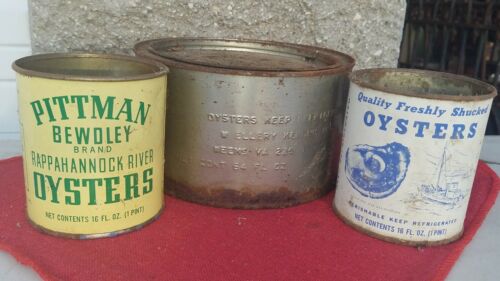 Title (ebay affiliate link): 3 VINTAGE OYSTER CANS 2 ELLERY KELLUM AND 1 PITTMAN BEWOLEY