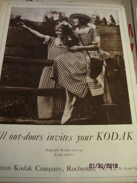Title (ebay affiliate link): 15 1920s KODAK NEWSPAPER ADS with giant photos ~full pg ads 16 x 22", frameable