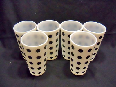 Swanky Swigs MILK GLASS Black Pok-A-Dots 6pcs TUMBLER