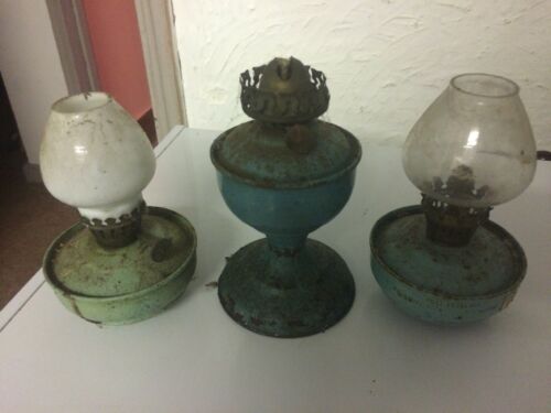 VINTAGE ENAMEL NURSERY KELLY OIL LAMP X3