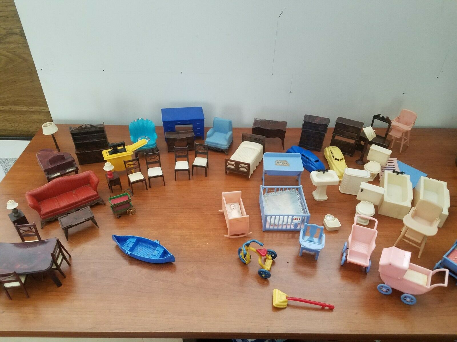 Ideal renwal Plastic Vintage Dollhouse Miniature Furniture Lot nursery living