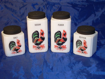 VINTAGE TIPP RANGE SET U.S.A. MILK GLASS KITCHENWARE