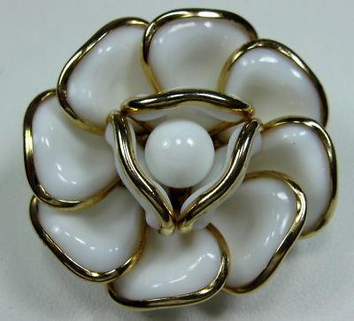 Crown Trifari Poured Milk Glass Rhinestone Brooch Pin