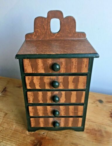 Antique Hand Painted Grain on Wood Doll Dresser or Jewelry Box