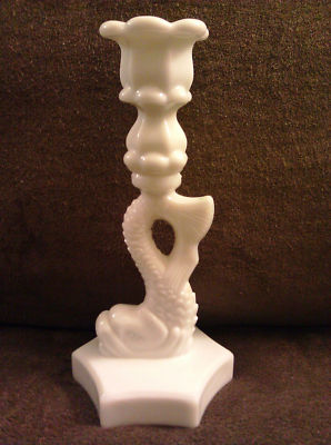 WESTMORELAND WHITE MILK GLASS FISH CANDLE HOLDER