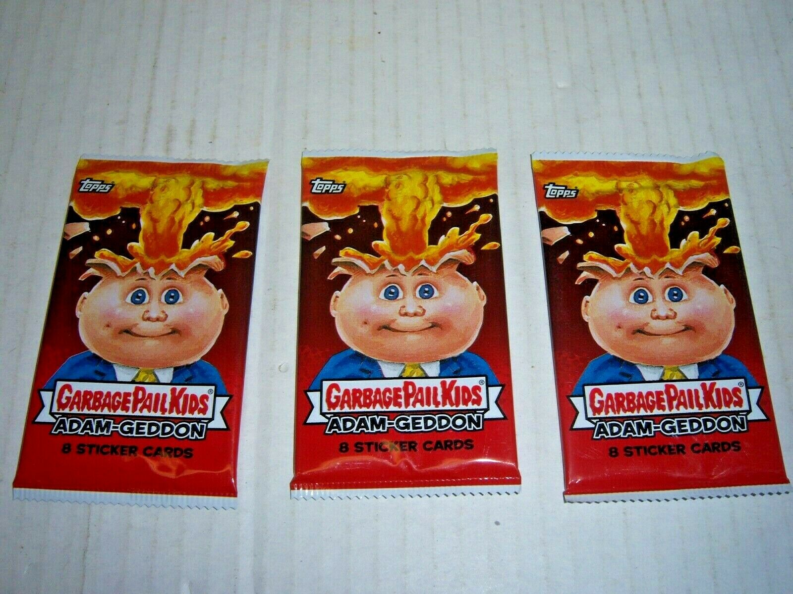 Title (ebay affiliate link): 3 unupened Garbage Pail Kids Adam-Geddon 8 sticker card packs (2017) Topps