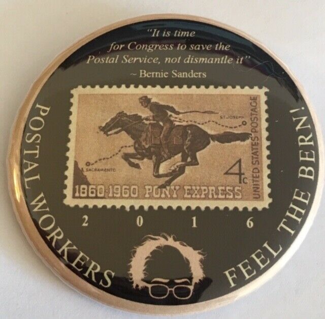 Title (ebay affiliate link): 2 1/4" Postal Workers Feel the Bern (Bernie Sanders) 2016 Campaign Pin