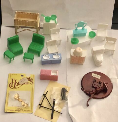 20+ pcs Assorted Vintage Estate Sale Dollhouse Furniture Miniatures Plastic Wood