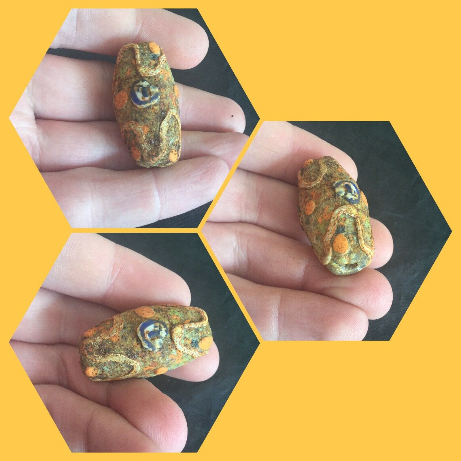 Title (ebay affiliate link): Rare ancient Phoenician Glass Bead with faces , 300 bc