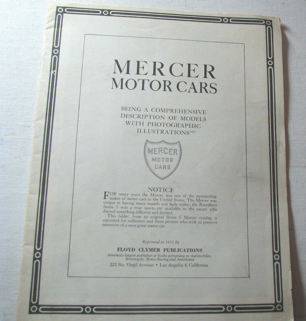 Title (ebay affiliate link): MERCER... MERCER MOTOR CARS (FLOYD CLYMER PUBLICATIONS Reprinted in 1951)