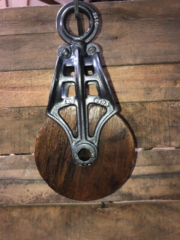 Title (ebay affiliate link): Antique Vintage Cast Iron And Wood Barn Pulley