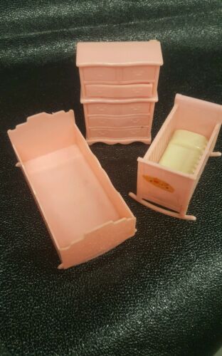 Renwal 3 PC BABY ROOM SET Vintage Dollhouse Furniture Miniature Plastic