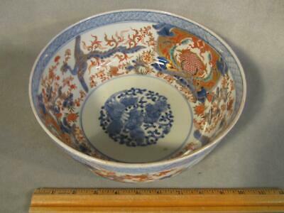 FINE ANTIQUE JAPANESE IMARI 9" PORCELAIN BOWL - BIRDS FLOWERS - TASSEL SIGNATURE
