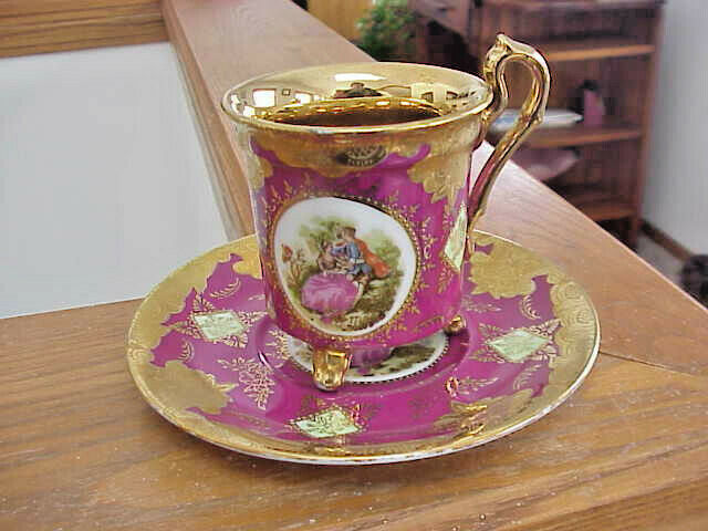 Vtg Gold Painted Courting Couple 3 Toed Cup & Saucer 33/177 Beehive Mark