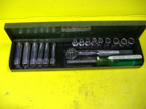 VINTAGE S-K SOCKET SET RATCHET METAL TOOL CASE BOX U.S.A. 1/4'''' SAE DEEP SHALLOW