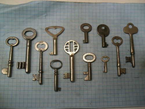 Title (ebay affiliate link): LOT OF 12 ANTIQUE SKELETON, FURNITURE, BARREL, CABINET AND OLD LOCK KEYS