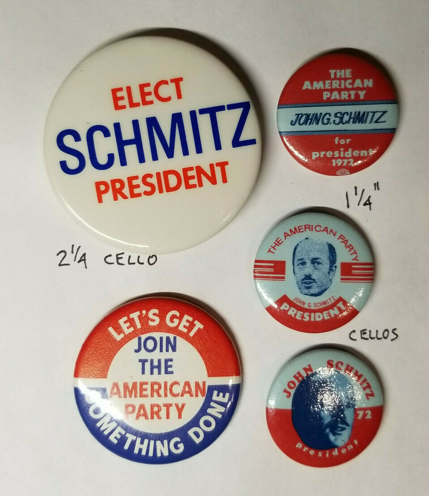 American Party Schmitz 1972 3rd party political campaign pinback lot
