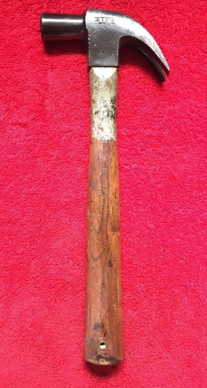 VINTAGE PLUMB BELL FACED 1 LB. CURVED CLAW HAMMER w PLUMB TESTED HICKORY HANDLE