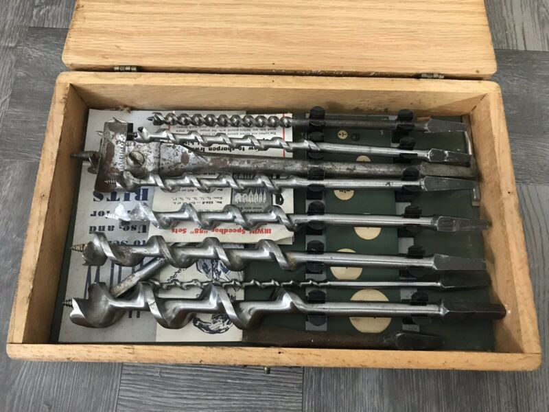 Vintage Irwin Auger Bit Carpenter Set with Wooden Box + Extras