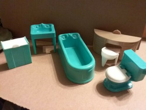 Title (ebay affiliate link): Plasco Blue BATHROOM SET Vintage Dollhouse Furniture 1:16 Renwal