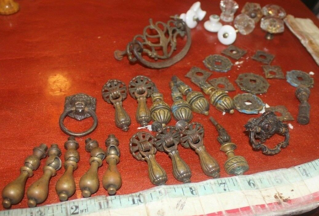 vintage drawer pulls bronze furniture lot glass porcelain dangle hanging antique