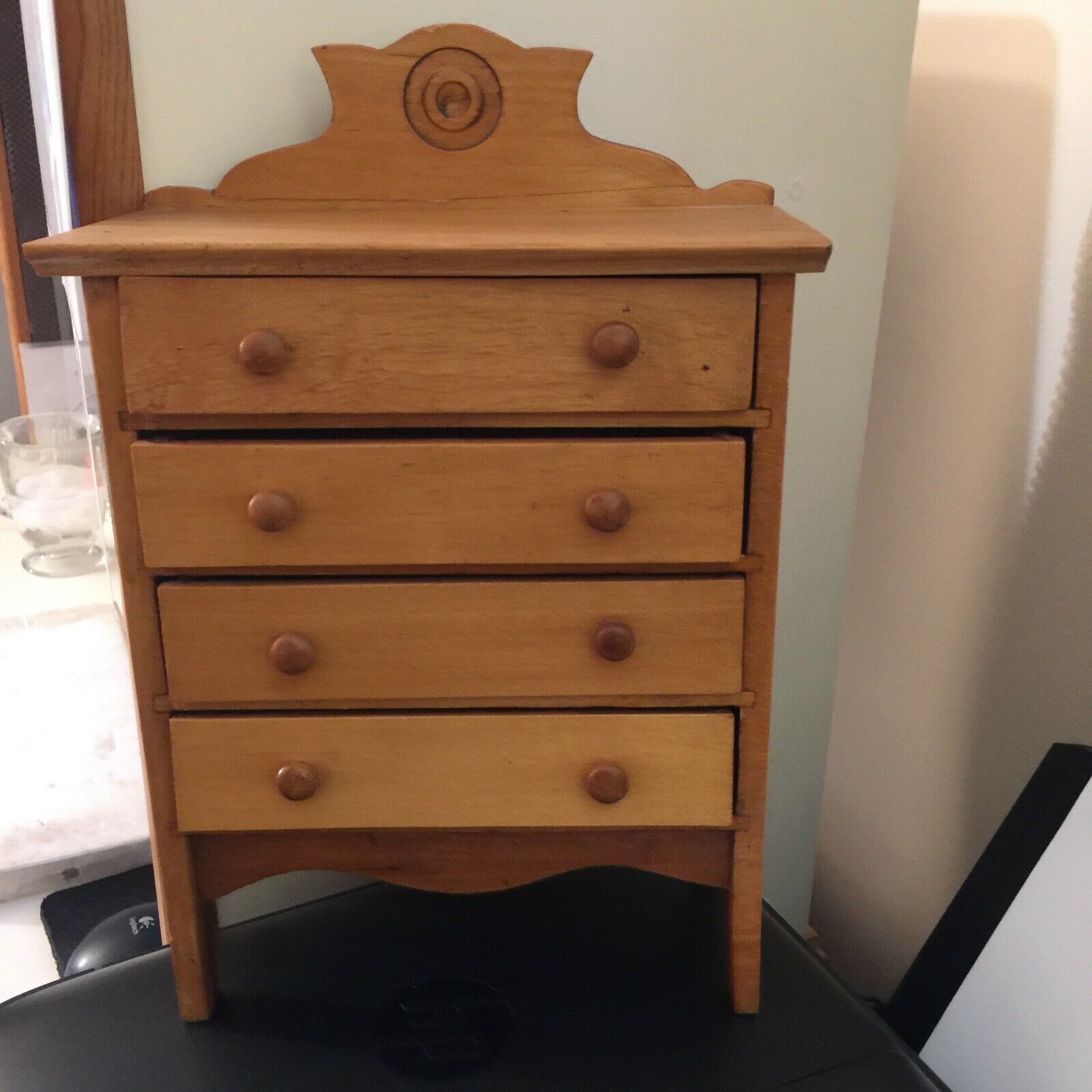 Vintage Primitive Wood Child Toy Doll Dresser Chest Of Drawers 11.5" Tall